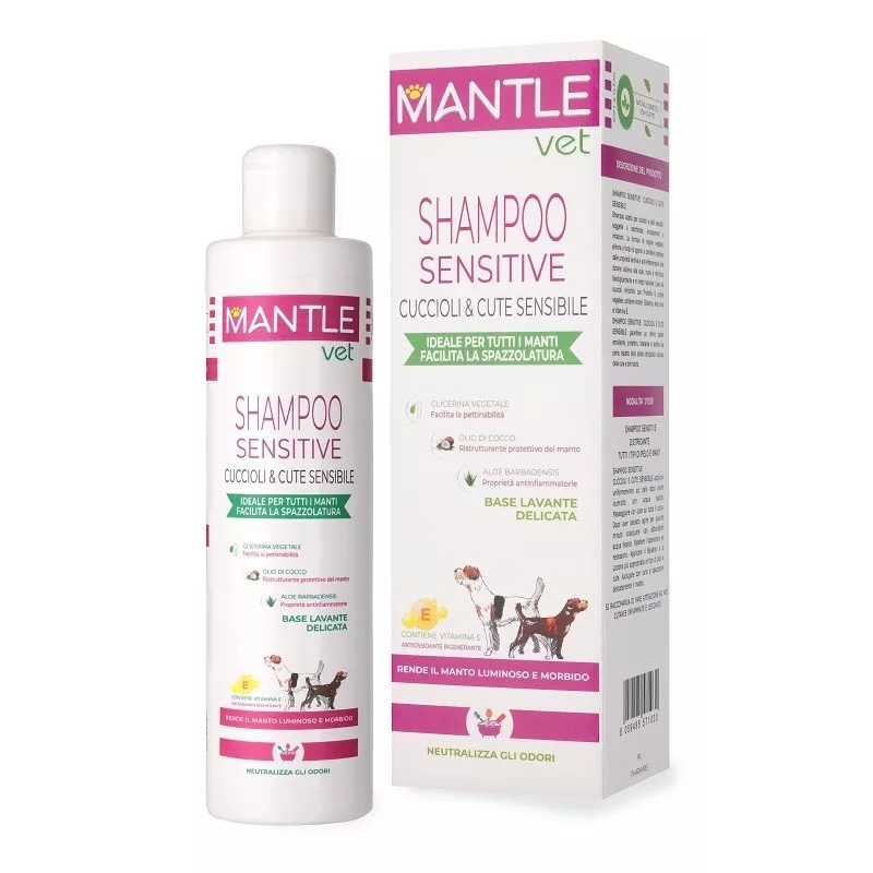 Shampoo adatto per cuccioli e pelli sensibili, soggette a secchezza, arrossamenti o irritazioni. Formula di origine vegetale, elimina a fondo lo sporco, deterge delicatamente la cute e il manto dell’animale. Contiene sostanze dalle proprietà calmanti e addolcenti che donano sollievo alla cute, nutrendo e ristrutturando naturalmente il pelo dei cuccioli.
