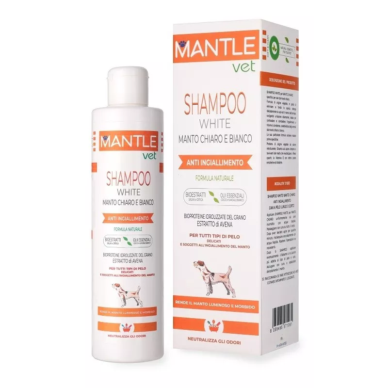 Shampoo specifico per cani e gatti dal manto chiaro. Formula di origine vegetale, elimina a fondo lo sporco, deterge delicatamente la cute e d il manto dell’animale Riduce la tendenza all’ingiallimento del pelo, ridona lucentezza e candore al bianco e ai manti chiari. La formula è arricchita con materie prime specifiche: