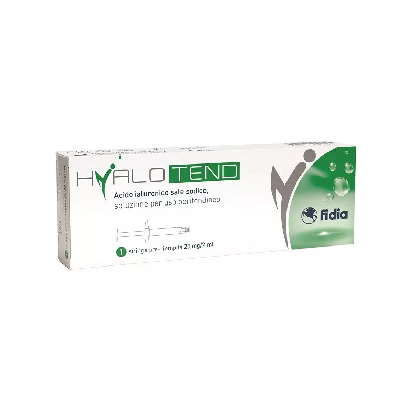 Siringa pre-riempita con soluzione di acido ialuronico sale sodico per uso peritendineo. Hyalotend è costituito da una soluzione viscosa di acido ialuronico sale sodico (500-730 kDa) ottenuto per fermentazione batterica, in soluzione fisiologica tamponata, per iniezione peritendinea. La soluzione (20 mg/2 ml) è contenuta in una siringa pre-riempita ed è fornita sterile. L'acido ialuronico è uno dei componenti principali del liquido sinoviale, è prodotto nella normale guaina tendinea ed è un componente principale della matrice extracellulare del tendine. La somministrazione del sale sodico dell'acido ialuronico esogeno nello spazio peritendineo, grazie alle sue proprietà viscoelastiche, consente di ridurre l'attrito superficiale dei tendini, aumenta la capacità di scorrimento, riduce il dolore e migliora la funzione tendinea nella tendinopatia, accelerando così il ritorno alle normali attività e allo sport. Hyalotend è indicato per il trattamento del dolore e il miglioramento dell'elasticità tendinea nella tendinopatia degli arti superiori e inferiori.