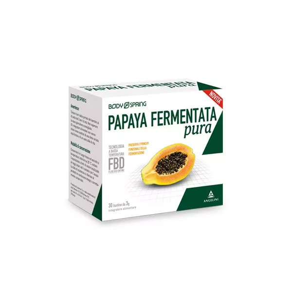 Ingredienti Papaya fermentata pura succo del frutto (Carica papaya L., destrosio da mais, agente anti-agglomerante: biossido di silicio).