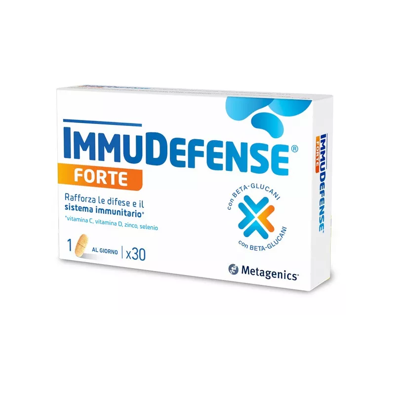 Contiene vitamina C, vitamina D, zinco e selenio, che contribuiscono al normale funzionamento del sistema immunitario. ImmuDefense Forte contiene anche quercetina, tè verde e beta-glucani.