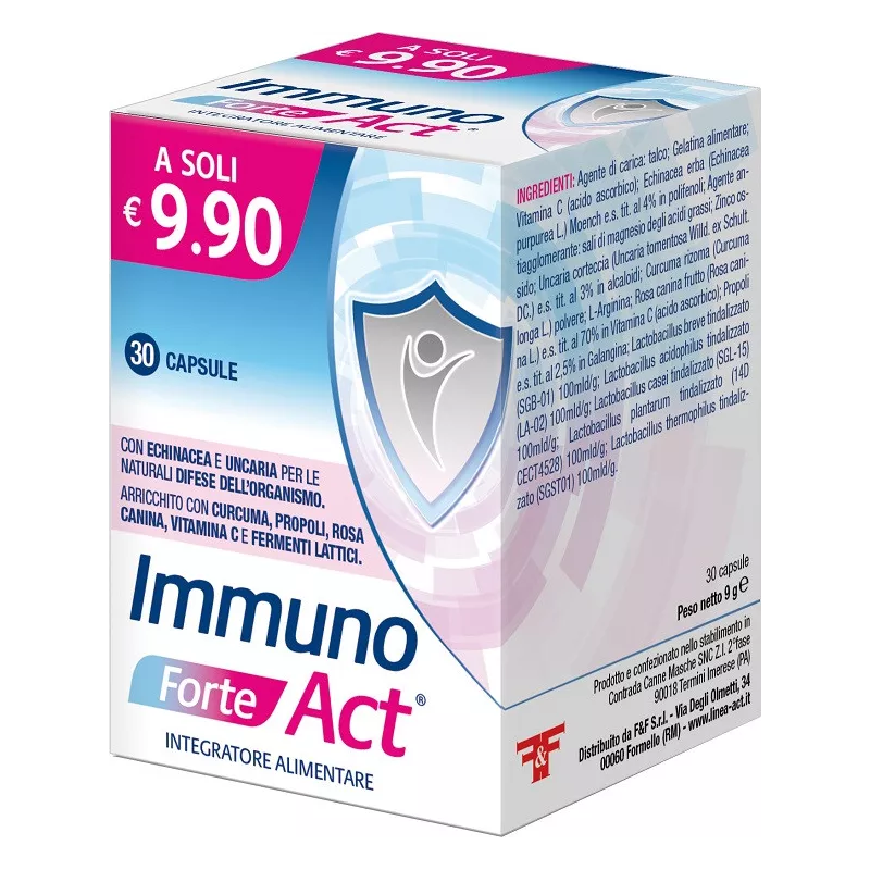 Ingredienti Agente di carica: talco; gelatina alimentare, vitamina C (acido ascorbico), echinacea erba (Echinacea purpurea L. Moench.) e.s. tit. 4% in polifenoli; agente antiagglomerante: sali di magnesio degli acidi grassi; zinco ossido, uncaria corteccia (Uncaria tomentosa Willd. ex Schult. DC.) e.s. tit. 3% in alcaloidi, curcuma rizoma (Curcuma longa L.) polvere, L-arginina, Rosa canina frutto (Rosa canina L.) e.s. tit. 70% in vitamina C (acido ascorbico), propoli e.s. tit. 2,5% in galangina, Lactobacillus breve tindalizzato (SGB-01) 100 mld/g, Lactobacillus acidophilus tindalizzato (LA-02) 100 mld/g, Lactobacillus casei tindalizzato (SGL-15) 100 mld/g, Lactobacillus plantarum tindalizzato (14D CECT4528) 100 mld/g, Lactobacillus thermophilus tindalizzato (SGST01) 100 mld/g.