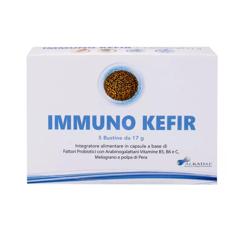 Immuno Kefir è una combinazione di batteri lattici, complessi di fibre vegetali e polveri di frutta in sinergia con specifici fattori nutrizionali per il supporto immunitario.