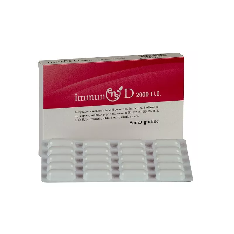 Ingredienti Quercetina; agente di rivestimento: involucro esterno vegetale in idrossipropilmetil cellulosa; vitamina C (acido L- ascorbico), bioflavonoidi da agrumi, lattoferrina, gluconato di zinco, vitamina E (acetato di D-alfa-tocoferile), vitamina D (colecalciferolo), licopene, lievito al selenio, vitamina B3 (nicotinamide), estratto secco su maltodestrine e biossido di silicio di sambuco (Sambucus nigra L., flos/folium) rapporto D/E 4/1, betacarotene; correttore di acidità: bicarbonato di sodio; emulsionante: polisorbato 80; agente antiagglomerante: biossido di silicio (nano); e.s. su maltodestrine e biossido di silicio di pepe nero (Piper nigrum L., fructus) rapporto D/E 4/1, vitamina B5 (D- pantotenato, calcio), vitamina B2 (riboflavina), vitamina B6 (cloridrato di piridossina), vitamina B1 (cloridrato di tiamina), vitamina B12 (cianocobalamina), folato (acido pteroil-monoglutammico), biotina (D-biotina).