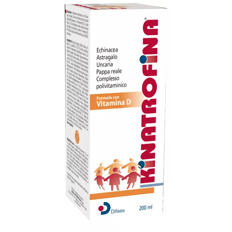 Ingredienti Acqua, fruttosio, miele d'acacia, vitamina C protetta tit. 97,5% (acido ascorbico; agente di rivestimento: etilcellulosa), aroma; correttore di acidità: sodio lattato; pappa reale fresca; conservante: potassio sorbato; echinacea e.s. tit. 0,6% in echinacoside (Echinacea angustifolia DC. radice, maltodestrine), nicotinammide, betacarotene tit. 10% (ottenilsuccinato di amido e sodio, sciroppo di glucosio, betacarotene, trigliceridi a catena media; antiossidante: DL-alfatocoferolo; agente antiagglomerante: fosfato tricalcico), astragalo e.s. tit. 16% in polisaccaridi (Astragalus membranaceus Bung. radice, maltodestrine); correttore di acidità: acido citrico; calcio pantotenato, vitamina D3 (saccarosio; addensante: gomma di acacia; amido di mais, trigliceridi a media catena, colecalciferolo; antiossidante: alfa-tocoferolo), uncaria estratto fluido idroalcolico D/E 1:1 (Uncaria tomentosa Willd. DC. corteccia), piridossina cloridrato, tiamina cloridrato, riboflavina, vitamina B12 tit. 0,1% (maltodestrine; correttori di acidità: acido citrico, citrato trisodico; cianocobalamina), acido folico, biotina.