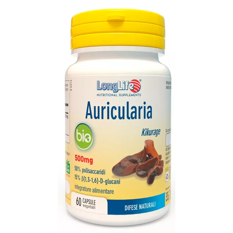 Descrizione Integratore alimentare a base di Auricularia auricula-judae (Bull.:Fr.) Wettst, utile per le naturali difese dell'organismo.