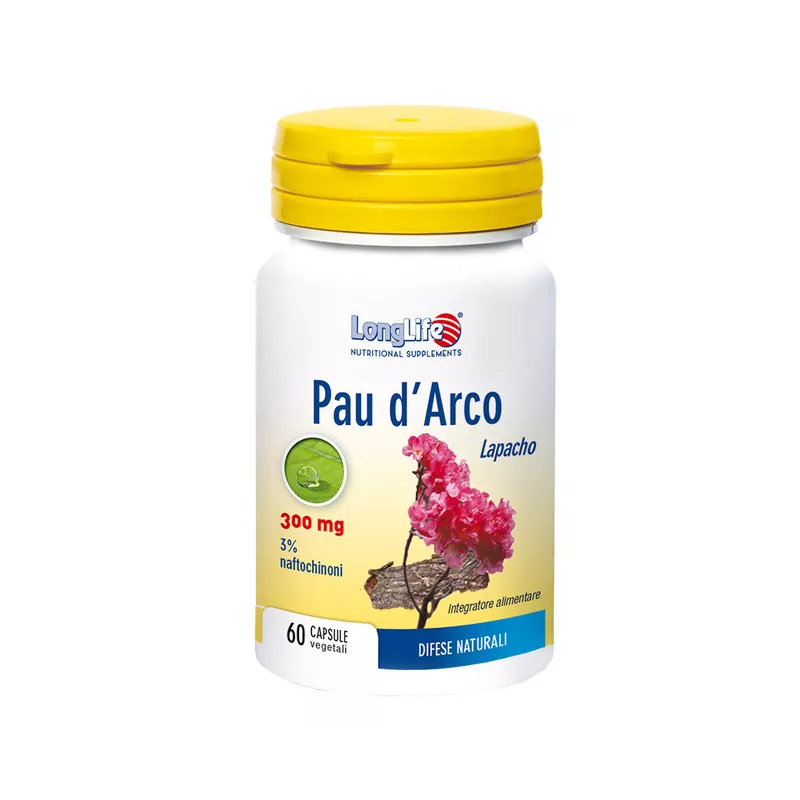 Descrizione Integratore di pau d'arco titolato al 3% in naftochinoni, utile per le naturali difese dell'organismo e la funzionalità delle prime vie respiratorie, dell'apparato cardiovascolare e della pressione arteriosa. Adatto a vegetariani e vegani.
