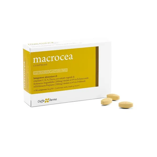 Ingredienti Echinacea (Echinacea angustifolia DC, maltodestrine) radice e.s. tit. 4% echinacoside, echinacea (Echinacea purpurea L.Moench., maltodestrine) radice e.s. tit. 4% polifenoli; agente di carica: fosfato dicalcico; vitamina C (acido L- ascorbico, etilcellulosa) tit. 97,5%; agente di carica: cellulosa microcristallina; zinco gluconato; stabilizzante: carbossimetilcellulosa sodica reticolata; vitamina E (DL-alfa-tocoferil acetato, amido modificato, maltodestrine, biossido di silicio) tit. 50%; agenti di rivestimento: polivinilalcol; polietilenglicole, talco; agenti antiagglomeranti: biossido di silicio, sali di magnesio degli acidi grassi; coloranti: E171, E172; vitamina A (retinil acetato, amido, saccarosio; addensante: gomma arabica; antiossidante: DL-alfa-tocoferolo; antiagglomerante: fosfato tricalcico).
