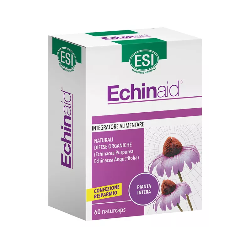 Ingredienti Echinacea (Echinacea purpurea Moench) erba estratto secco titolato al 4% in polifenoli totali (270 mg), pullulano, echinacea (Echinacea angustifolia DC) radice estratto secco titolato al 4% in echinacoside (5 mg), echinacea (Echinacea purpurea Moench) erba estratto secco titolato al 2% in acido cicorico (30 mg), echinacea (Echinacea purpurea Moench) estratto secco D/E 4:1 (75 mg), agente di carica: cellulosa microcristallina; agenti antiagglomeranti: sali di magnesio degli acidi grassi, biossido di silicio; carragenina, cloruro di potassio.