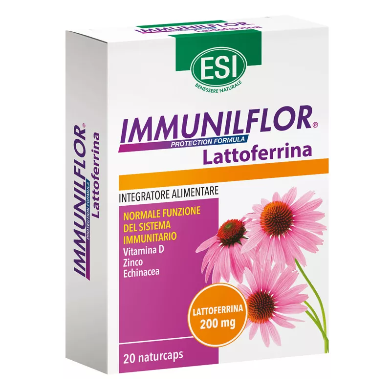 Descrizione Integratore alimentare a base di lattoferrina, echinacea, zinco e vitamina D.