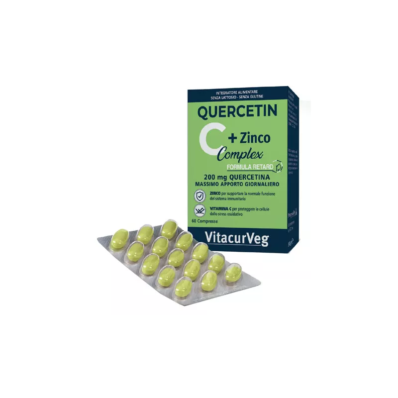Ingredienti Quercetina [estratta da Styphnolobium japonicum (L.) Schott sin. Sophora japonica L.], vitamina C; agenti di carica: cellulosa microcristallina E460, fosfato dicalcico E341; zinco gluconato; anti-agglomeranti: biossido di silicio E551; sali di magnesio degli acidi grassi E470b; gomma da acacia.
