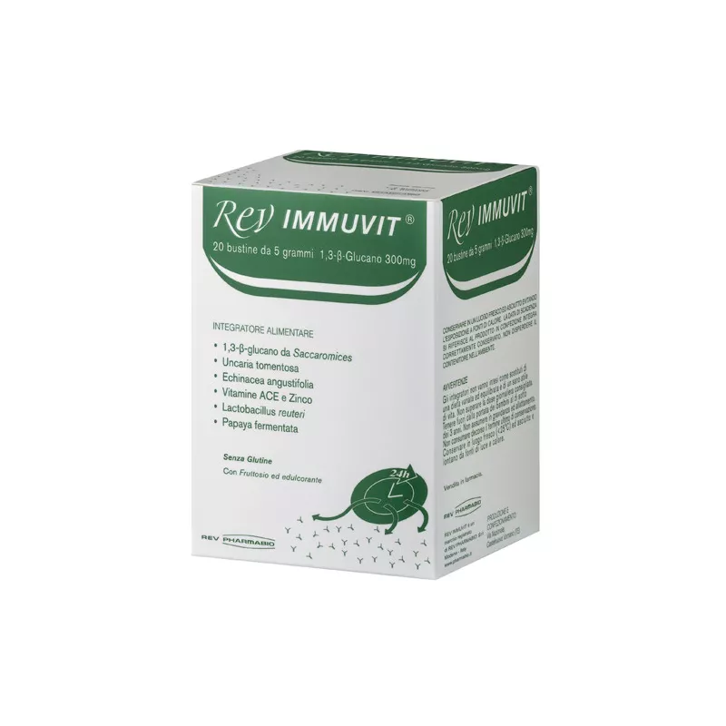 Rev IMMUVIT Integratore alimentare utile in caso di carenze o aumentati fabbisogni dei componenti in esso contenuti.