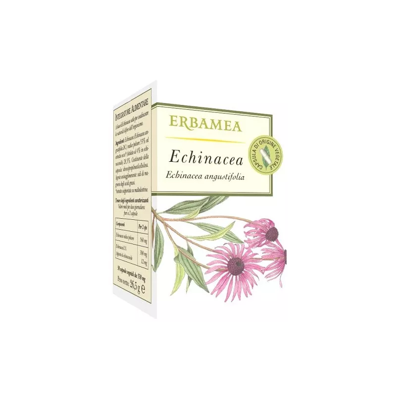 Ingredienti Echinacea (Echinacea angustifolia DC.) radice polvere 53% ed estratto secco* (titolato al 4% in echinacoside) 28,3%. Costituente della capsula: idrossipropilmetilcellulosa. Agente antiagglomerante: sali di magnesio degli acidi grassi.