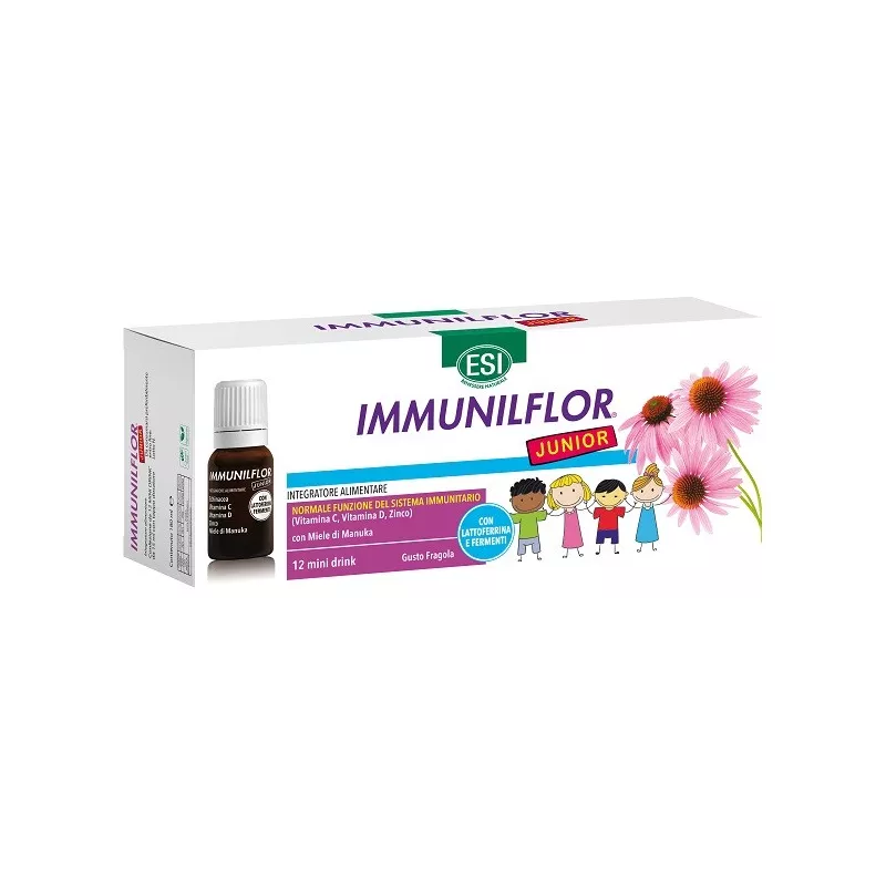 Favorisce le difese immunitarie dell’organismo per prevenire e/o combattere malattie da raffreddamento, influenza, aggressioni batteriche alle alte vie respiratorie e le infezioni di carattere generale. La lattoferrina favorisce la funzione antimicrobica e immunostimolante del prodotto. I quattro ceppi di fermenti tindalizzati selezionati da ESI sono particolarmente attivi sulla stimolazione del sistema immunitario e la loro azione è supportata sinergicamente dagli altri componenti. Gusto fragola.