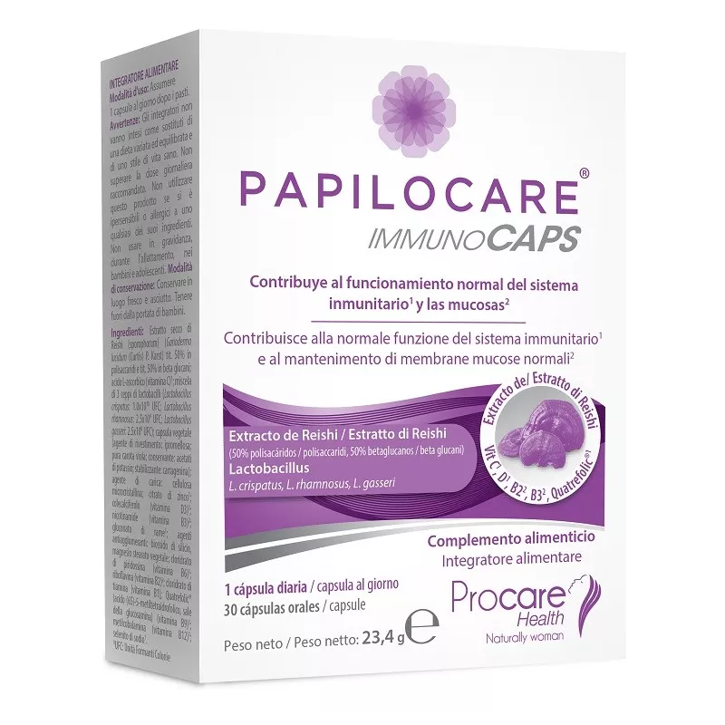 Ingredienti Estratto secco di reishi (sporophorum)[Ganoderma lucidum (Curtis) P. Karst] tit. 50% in polisaccaridi e tit. 50% in beta glucani, acido L-ascorbico (vitamina C), miscela di 3 ceppi di lactobacilli (Lactobacillus crispatus: 1 x 10