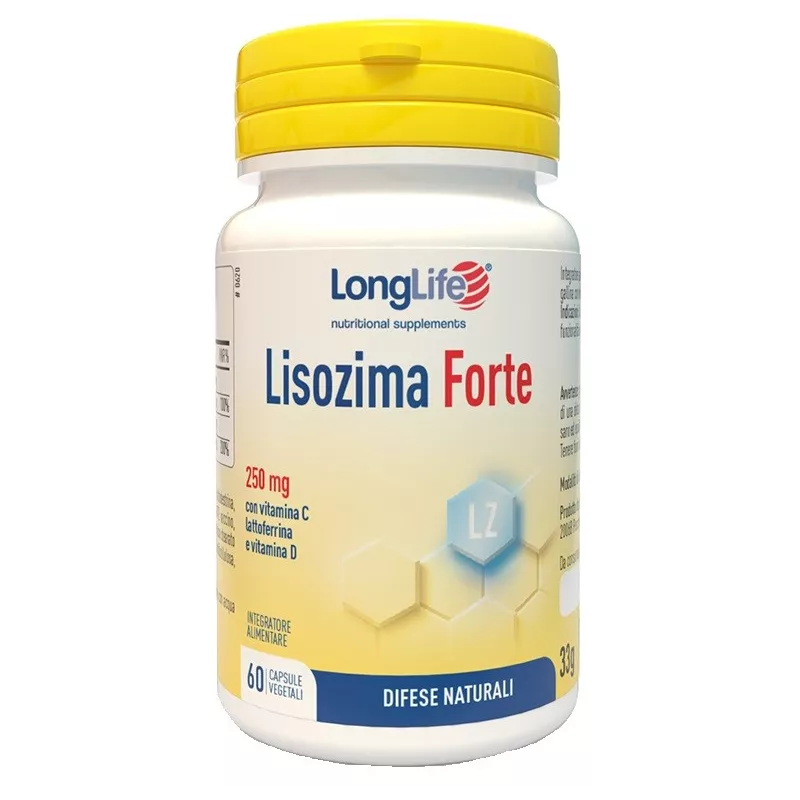 Descrizione Integratore alimentare di lisozima idrolizzato di albume d'uovo di gallina con vitamina C, lattoferrina e vitamina D.