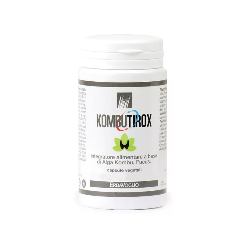 Descrizione Integratore alimentare a base di alga kombu e fucus, in capsule vegetali.