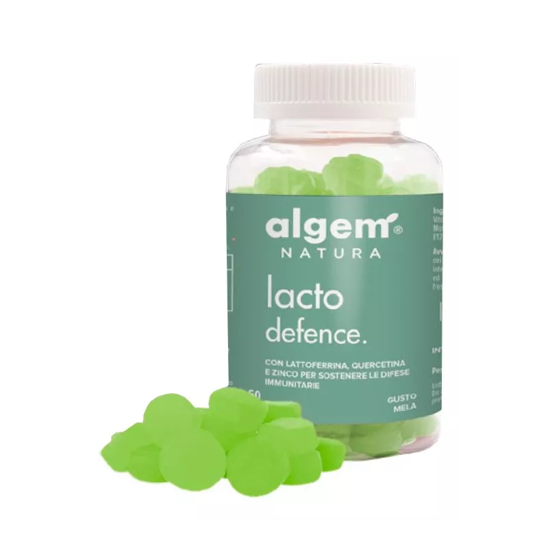 Ingredienti Lattoferrina, quercetina, fruttooligosaccaridi (FOS), zinco gluconato, amido di mais, maltitolo polvere spray dry, maltitolo sciroppo, acqua, aroma mela, colorante naturale clorofilla e curcumina.