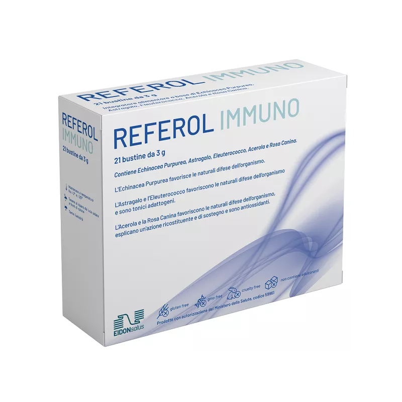 Ingredienti Agente di carica: maltodestrina alimentare; vitamina C (sodio ascorbato), astragalo tit. 70% polisaccaridi (Astragalus membranaceus root extract), aroma, agente antiagglomerante: silice micronizzata; miscela di lattobacilli (L. acidophilus SGL11 40%, L. rhamnosus SGL06 25%, B. bifidum SGB02 25%, S. thermophilus SGST01 7%, L. delbrueckii bulgaricus ATCC11842-7995 3%), eleuterococco tit. 0,4% eleuterosidi, 5% saponosidi (Acanthopanax senticosus root extract), echinacea purpurea (estratto secco intero di radice e sommità, tit. 4% polifenoli), Polygonum cuspidatum radice estratto secco tit. 98% resveratrolo; lubrificante: magnesio stearato; acerola tit. 50% vitamina C (Malpighia glabra), rosa canina tit. 70% vitamina C (Rosa canina fruit extract).