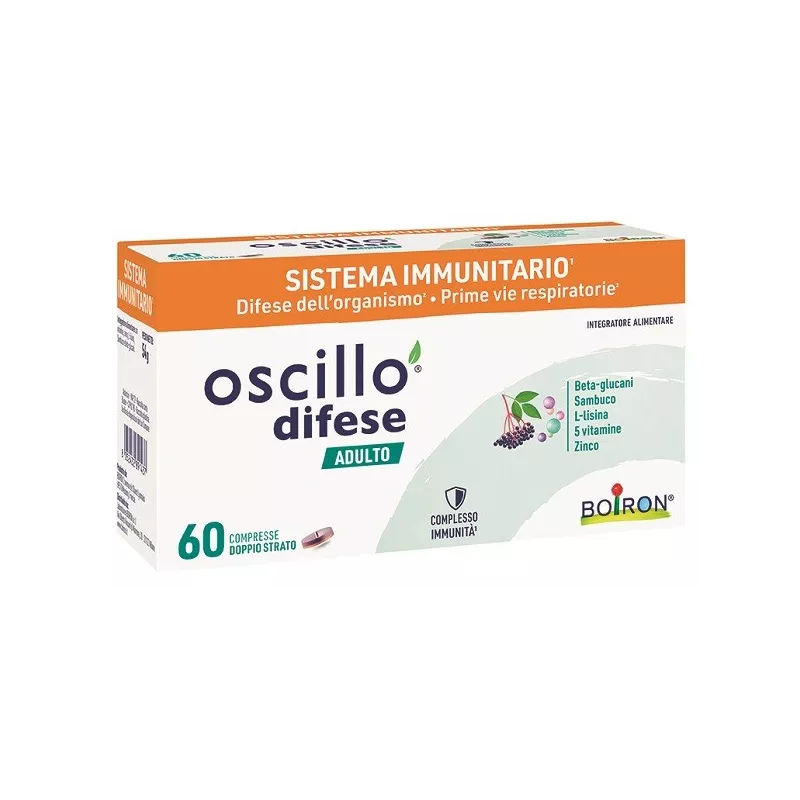 Ingredienti Agente di carica: cellulosa microcristallina; estratto di frutti di sambuco (Sambucus nigra L.), beta-glucani del lievito (Saccharomyces cerevisiae), acido L-ascorbico (vitamina C), L-lisina cloridrato, gluconato di zinco; colorante: riboflavina; anti-agglomerante: sali di magnesio degli acidi grassi; colecalciferolo (vitamina D3), cianocobalamina (vitamina B12), cloridrato di piridossina (vitamina B6), acido folico (vitamina B9).