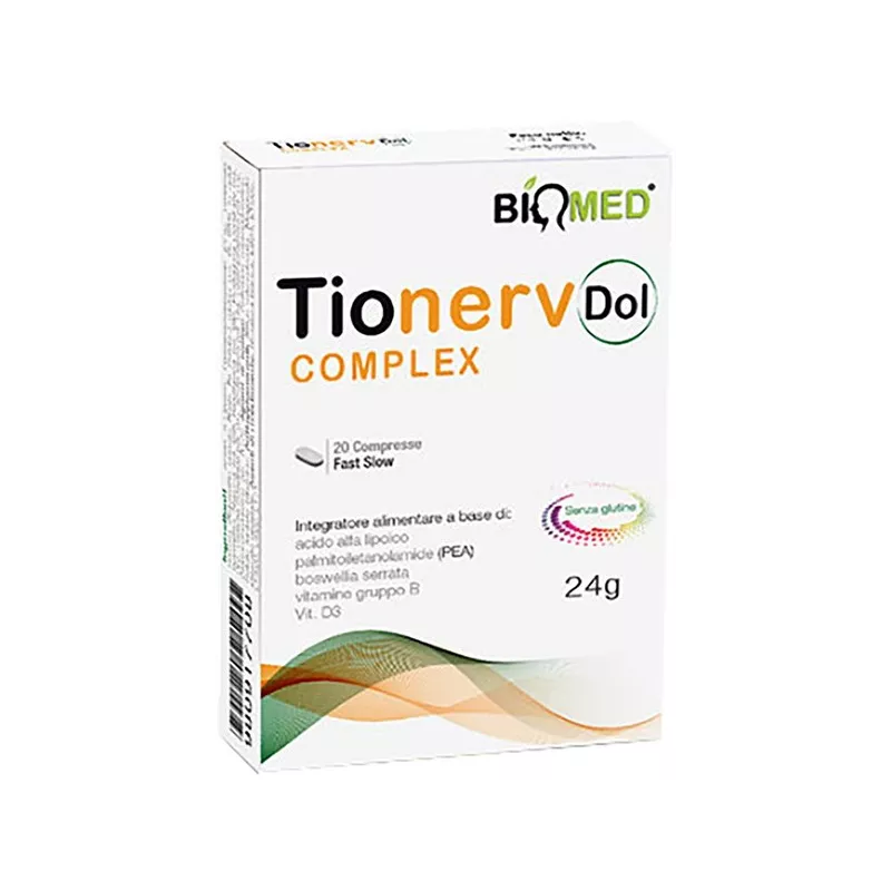 Ingredienti Acido alfa-lipoico, palmitoiletanolamide (PEA), Boswellia serrata (Boswellia serrata Roxb. Ex Colebr.) resina e.s. tit. 65% in acidi boswellici, niacina (vitamina B3), riboflavina (vitamina B2), piridossina cloridrato (vitamina B6), tiamina cloridrato (vitamina B1), acido folico (vitamina B9), colecalciferolo (vitamina D3), cianocobalamina (vitamina B12); agenti di carica: cellulosa microcristallina, calcio fosfato bibasico; antiaggiomeranti: silice micronizzata, magnesio stearato vegetale; agenti di rivestimento: filmatura bianca, E904, E1505, E1420, E422, E171.