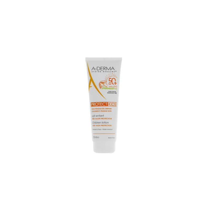 Dotato di un sistema di filtraggio SPF50+ alto, il latte solare A-Derma ProtectKids offre al bambino una vera protezione contro le scottature e rinforza la barriera cutanea attraverso la combinazione di Barriestolide ed avena Rhealba.