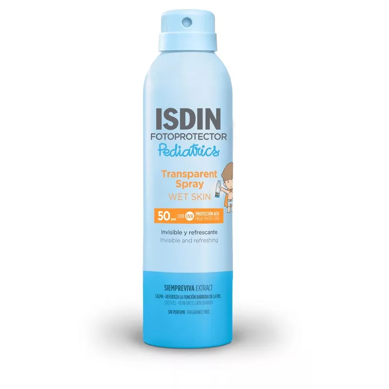 Protezione alta. SPF 50. Fotoprotettore corpo in spray trasparente e leggero, specifico per i bambini. Contiene SIEMPREVIVA Extract, un ingrediente di origine naturale che aiuta a lenire la pelle esposta al sole e riparare e ra orzare la funzione barriera. Con vitamina E antiossidante e Pantenolo, che idrata intensamente la pelle, favorendo il naturale processo di rigenerazione cutanea dopo l'esposizione al sole. Molto resistente all'acqua. Assorbimento e asciugatura immediati. Mineral oil-free. Adatto alla pelle sensibile e atopica. Testato sotto controllo dermatologico e pediatrico. Ipoallergenico: formulato per ridurre il rischio di allergie.