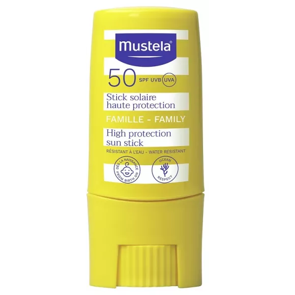 Lo Stick Solare Mustela è specificamente formulato per proteggere la pelle delicata di neonati e bambini dai danni dei raggi ultravioletti fin dalla nascita.
