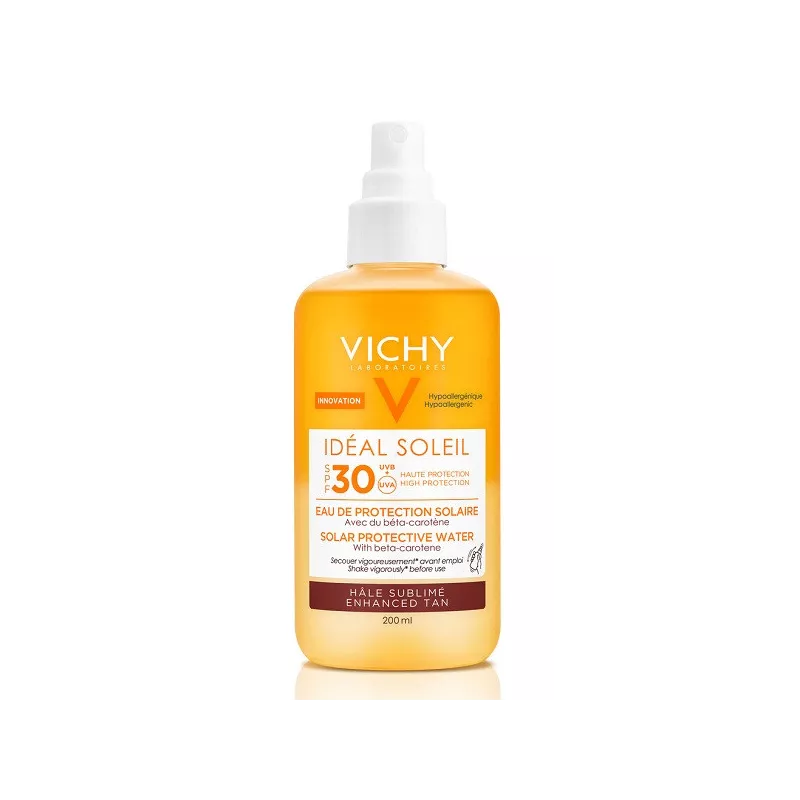 Acqua solare con alta protezione dai raggi solari e lascia una sensazione di freschezza, non appiccicosa e senza effetto bianco. La formula è arricchita con betacarotene. Texture acquosa innovativa – ultra leggera, ultra fresca. La formula, composta dal 3% di glicerina dalle proprietà idratanti e dallo 0,1% di vitamina E, è arricchita con betacarotene per un'abbronzatura intensa e luminosa. La speciale tecnologia contenuta all'interno è composta da una fase acquosa e una fase oleosa in cui sono presenti i filtri UVA, UVB e UVA lunghi. Il risultato è uno spray trasparente che non lascia residui e dona una sensazione di fresco.