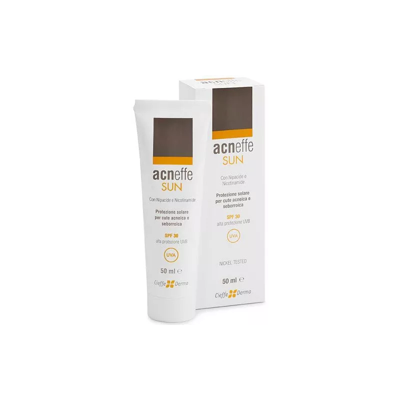 Crema appositamente studiata per la protezione solare della cute acneica e/o seborroica. Oltre a contrastare i fattori che determinano l'insorgenza dell'acne, i principi attivi in essa contenuti proteggono le strutture cellulari dai danni indotti dalle radiazioni UV, stimolando contemporaneamente la produzione di melanina.