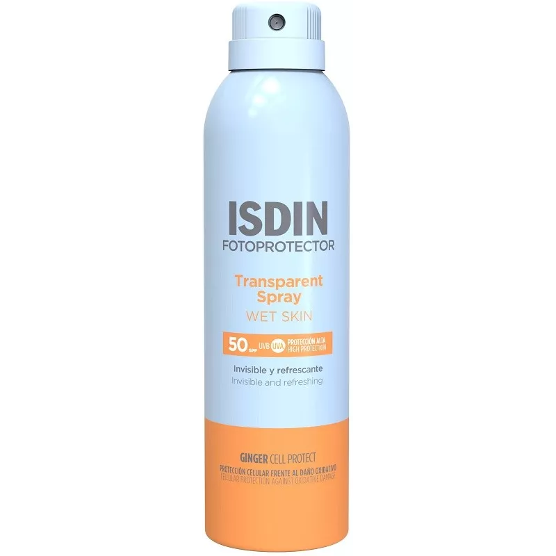 Protezione alta. SPF 50. Fotoprotettore corpo rinfrescante in spray trasparente. Contiene GINGER CELL PROTECT che o re protezione cellulare contro i danni ossidativi causati dal sole. Resistente all'acqua. Assorbimento e asciugatura immediati. Mineral oil-free. Adatto alla pelle sensibile e atopica. Dermatologicamente testato. Ipoallergenico: formulato per ridurre il rischio di allergie.