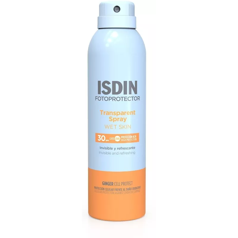 Protezione alta. SPF 30. Fotoprotettore corpo rinfrescante in spray trasparente. Contiene GINGER CELL PROTECT che o re protezione cellulare contro i danni ossidativi causati dal sole. Resistente all'acqua. Assorbimento e asciugatura immediati. Mineral oil-free. Adatto alla pelle sensibile e atopica. Dermatologicamente testato. Ipoallergenico: formulato per ridurre il rischio di allergie.