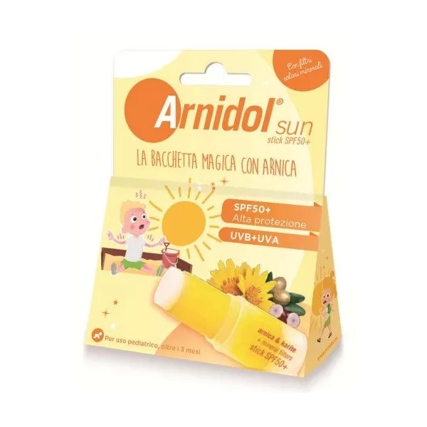 Arnidol Sun stick fornisce una protezione molto alta contro le radiazioni solari UVA e UVB e idrata le pelli più sensibili.