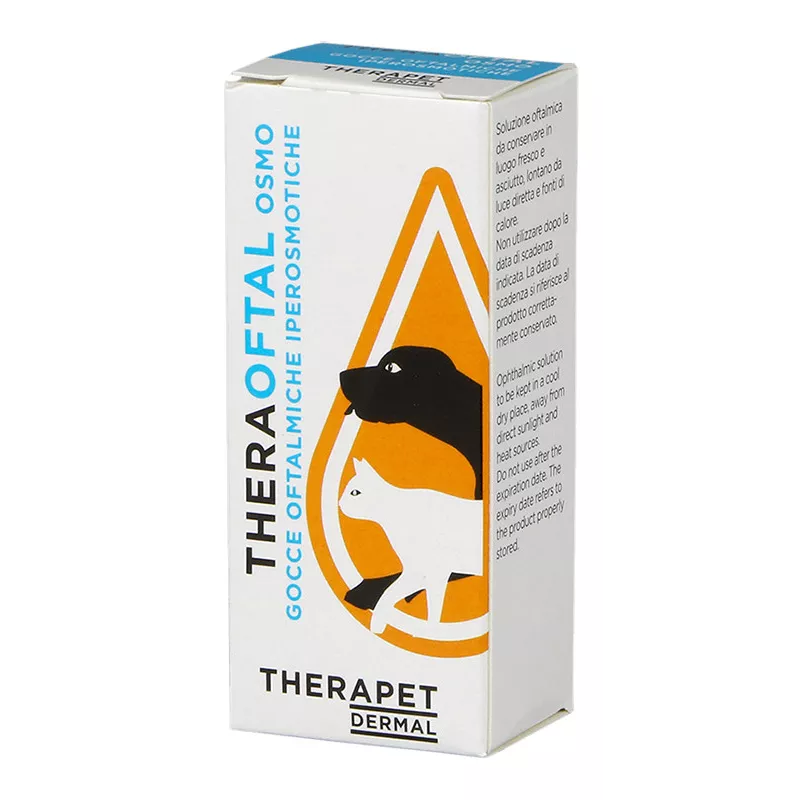 Theraoftal Osmo non è un farmaco ma un prodotto per l'igiene dell'occhio di cani e gatti.