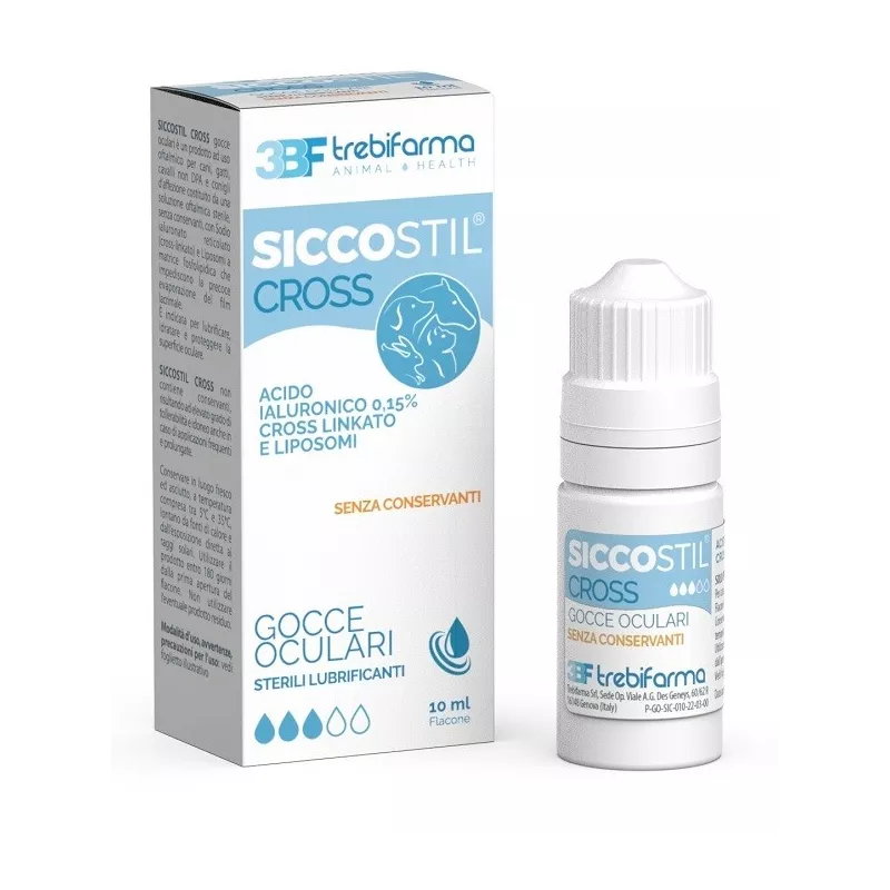 - Lasciar trascorrere 10-15 minuti tra l'instillazione di Siccostil Cross e l'eventuale instillazione di farmaci o prodotti per uso oftalmico esterno.