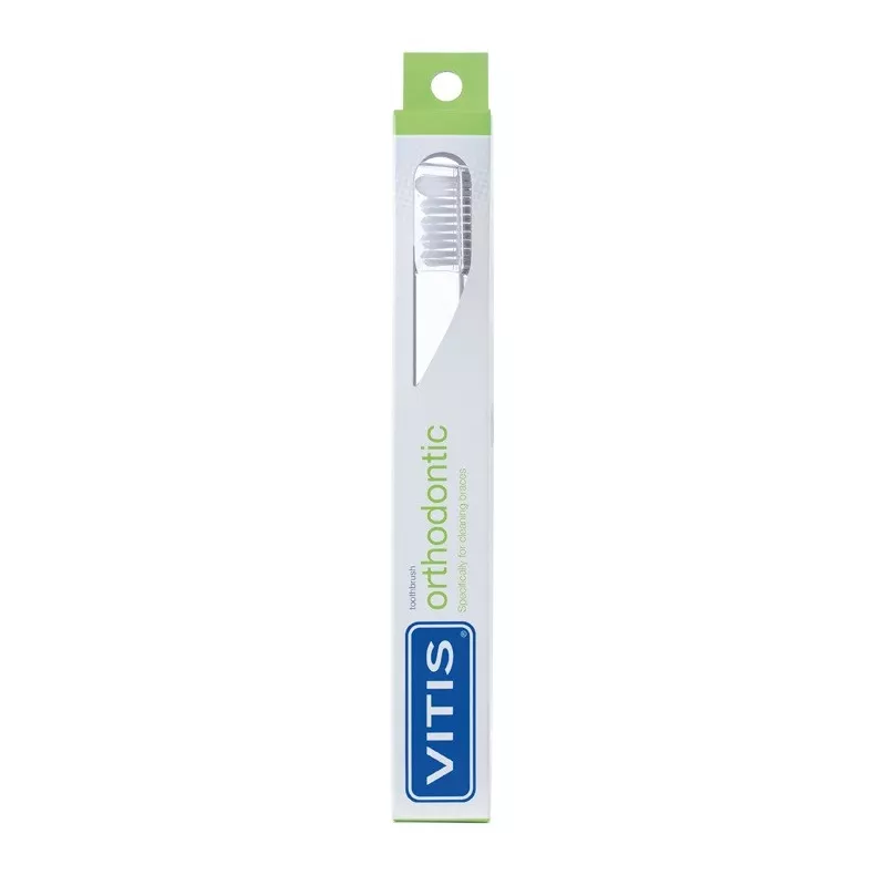 VITIS orthodontic Spazzolino è uno spazzolino per uso quotidiano, con testina di normali dimensioni é con setole morbide e medie. La sua caratteristica principale è che le setole presentano un profilo speciale a forma di V che permette un doppio effetto di pulizia: oltre a pulire le zone di accesso più difficile degli apparecchi ortodontici, in cui si accumulano più facilmente i batteri, si raggiunge anche la zona gengivale.