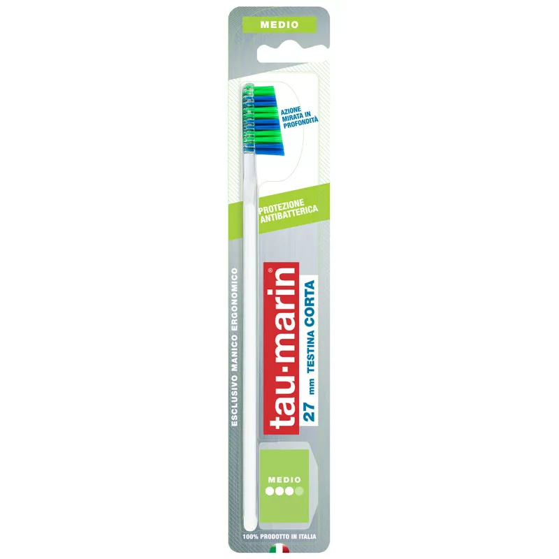 Setole inclinate per un'azione mirata in profondità, raggiungendo tutti i punti più nascosti della bocca. Le setole sono in tynex, ad elasticità differenziata e a punta arrotondata, per evitare traumi; ciuffi densi e ravvicinati per un'azione pulente più concentrata. Setole rigide per rimuovere la placca e semirigide per massaggiare le gengive.
