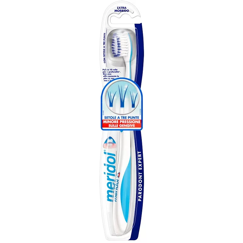 meridol PARODONT EXPERT Il prodotto combina le setole dalle estremità coniche e super sottili con le setole a tre punte.
