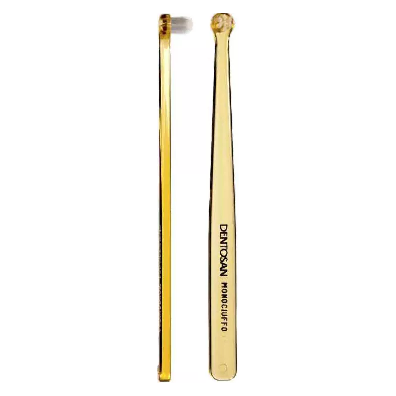 Le dimensioni ridotte e la particolare conformazione della testina dello spazzolino Dentosan monociuffo facilitano la rimozione della placca batterica anche dalle superfici difficilmente accessibili (es. spazio tra apparecchio ortodontico e dente).