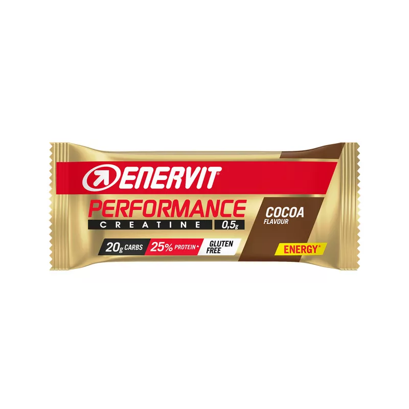 Barretta indicata in caso di sforzo muscolare intenso e prolungato nell’ambito dell’attività sportiva. Alta percentuale di carboidrati (75%) e basso contenuto di grassi (3%). Gusto cacao con creatina.