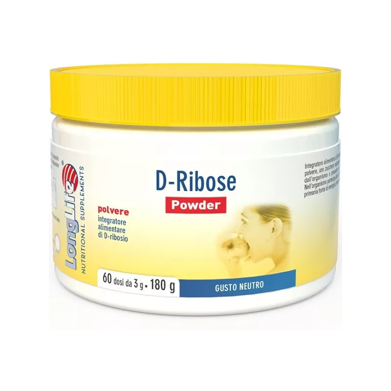 Descrizione Integratore alimentare di D-ribosio puro in polvere, uno zucchero naturalmente prodotto dall'organismo e presente negli alimenti.