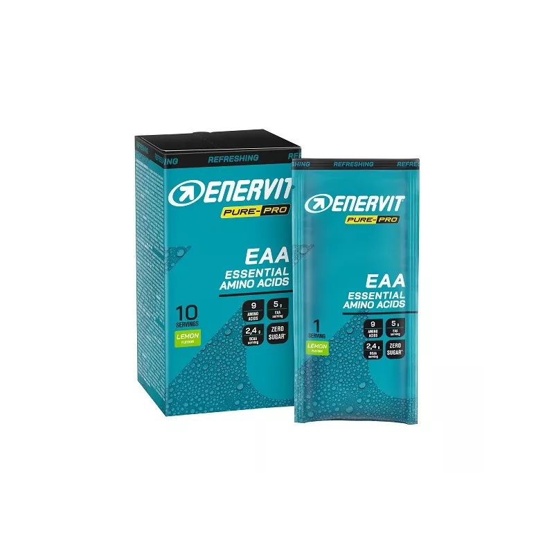 Ingredienti Blend di aminoacidi essenziali (L-leucina, L-lisina, L-treonina, L-isoleucina, L-valina, L-fenilalanina, L-metionina, L-istidina, L-triptofano) (50%), maltodestrina resistente, aromi naturali; acidificante: acido citrico; addensante: idrossipropil-cellulosa; emulsionante: esteri di saccarosio degli acidi grassi; edulcorante: sucralosio; colorante: curcumina; vitamina B6 (cloridrato di piridossina), vitamina B12 (cianocobalamina).