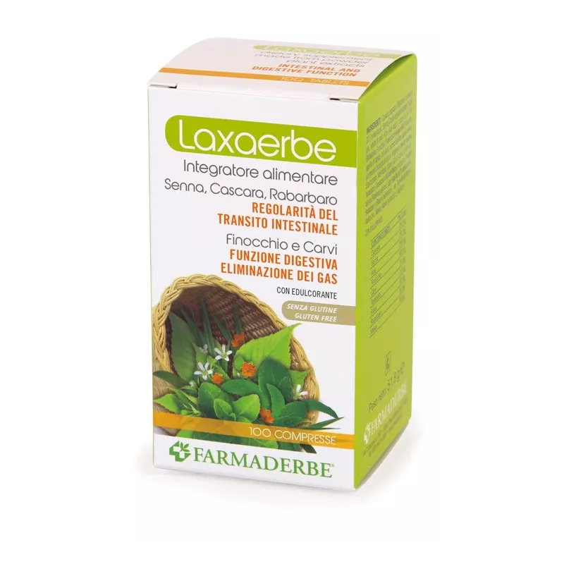 Descrizione Laxaerbe è un integratore alimentare a base di estratti vegetali. Senna, cascara, rabarbaro, tarassaco, fallax e malva sostengono la regolarità del transito intestinale. Finocchio e carvi favoriscono la funzione digestiva, la regolare motilità gastrointestinale e l’eliminazione dei gas.