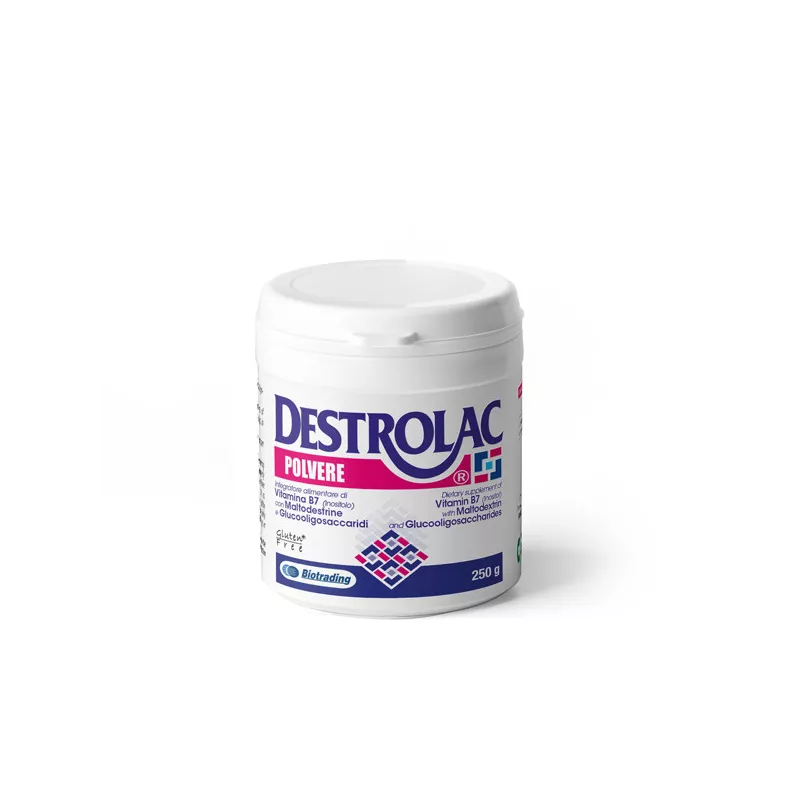 Destrolac polvere è un integratore alimentare di vitamina B7 (inositolo) con maltodestrine e glucooligosaccaridi utile a colmare le carenze nutrizionali o gli aumentati fabbisogni di tale nutriente. Particolarmente indicato nel trattamento dietetico della stipsi.