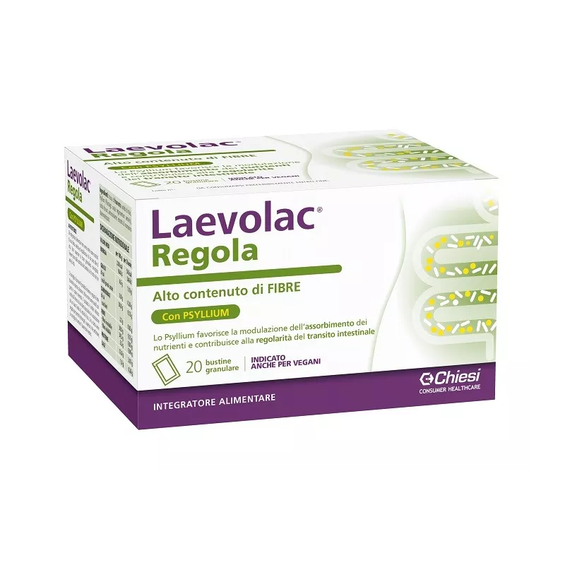 Descrizione Laevolac Regola è un integratore alimentare a base di fibre provenienti dalla crusca del frumento e dallo Psyllium (Plantago ovata):