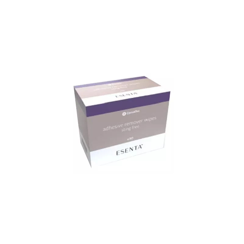 Le salviette per la rimozione adesivo Esenta sono realizzate in viscosa/poliestere di classe medicale ed imbevute in 3 ml di una formulazione fluida in silicone che interrompe il legame tra un adesivo e la cute consentendo una rimozione dell'adesivo più facile.