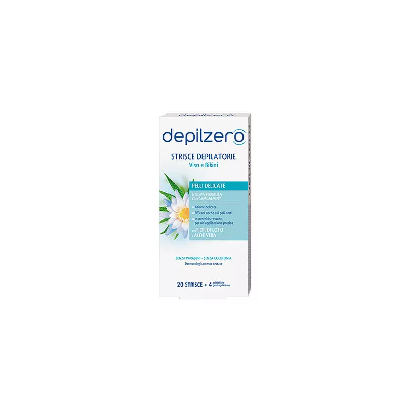 Confezione da 20 strisce + 4 salviettine post epilazione.