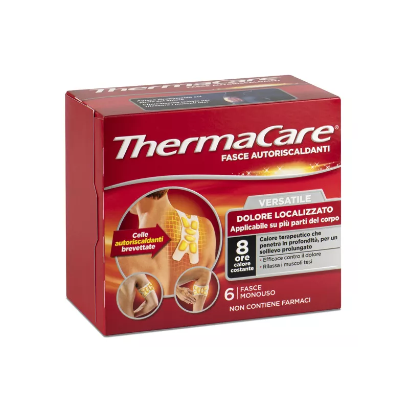 Aprire l'involucro quando si è pronti per l'uso. ThermaCare può impiegare fino a 30 minuti per raggiungere la sua temperatura terapeutica. Rimuovere la carta protettiva per scoprire il lato adesivo Posizionare sull'area dolente e premere con decisione il lato adesivo sulla pelle. Fare attenzione durante l’applicazione a non sovrapporre le celle. Non utilizzare su viso, testa, seno, interno del braccio, ascelle, dita, basso addome, inguine, interno del ginocchio, piedi o dita dei piedi. Al di sopra dei 55 anni d’età, indossare Thermacare sopra un sottile capo di vestiario (o tessuto), non a contatto diretto con la pelle. Per una massima efficacia, indossare ThermaCare per 8 ore.