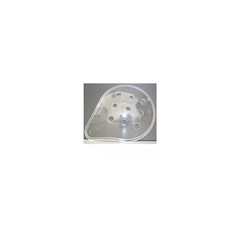 La "protezione oculare" è utilizzabile, quando prescritta dal Medico, dopo un intervento di tipo oculistico e va posizionata in modo che la bombatura sia rivolta all’esterno per permettere alla palpebra tutti i movimenti e costituire un riparo alla zona operata. La "protezione" oculare è progettata per essere utilizzata indifferentemente su entrambi gli occhi. Prodotta in materiale atossico, anallergico, infrangibile e trasparente. Il contatto con la "protezione" e la pelle è reso atraumatico dall’arrotondamento del bordo di contatto. I nove fori posti al centro della protezione hanno un diametro di 5 mm. per non consentire l’introduzione di corpi contundenti. I due forellini del diametro di 2 mm. posti ai lati della "protezione", sono creati per permettere l’introduzione di un elastico onde evitare l’uso di cerotti per fermare il dispositivo sulla pelle del paziente che potrebbero creare irritazioni. La "protezione" è costruita per poter resistere ad uno schiacciamento di 25 kg. Per motivi igienici, la protezione oculare deve essere utilizzata da una sola persona.