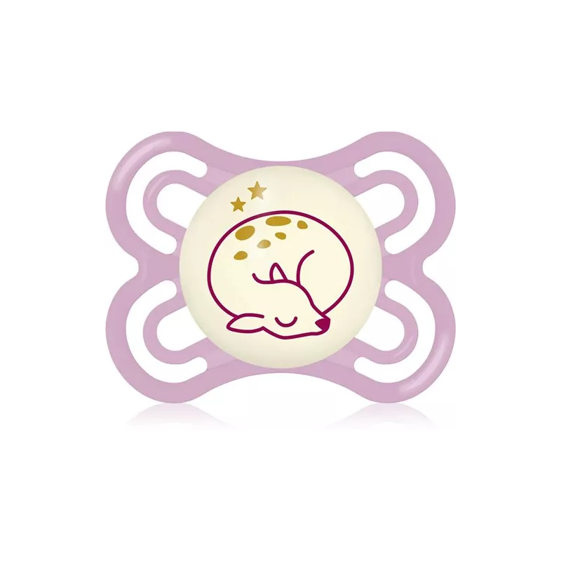 Ciuccio che si illumina al buio, facile da trovare grazie al bottone luminescente. Il ciuccio MAM Perfect Night per favorire uno sviluppo sano del cavo orale ed è facile da trovare al buio.